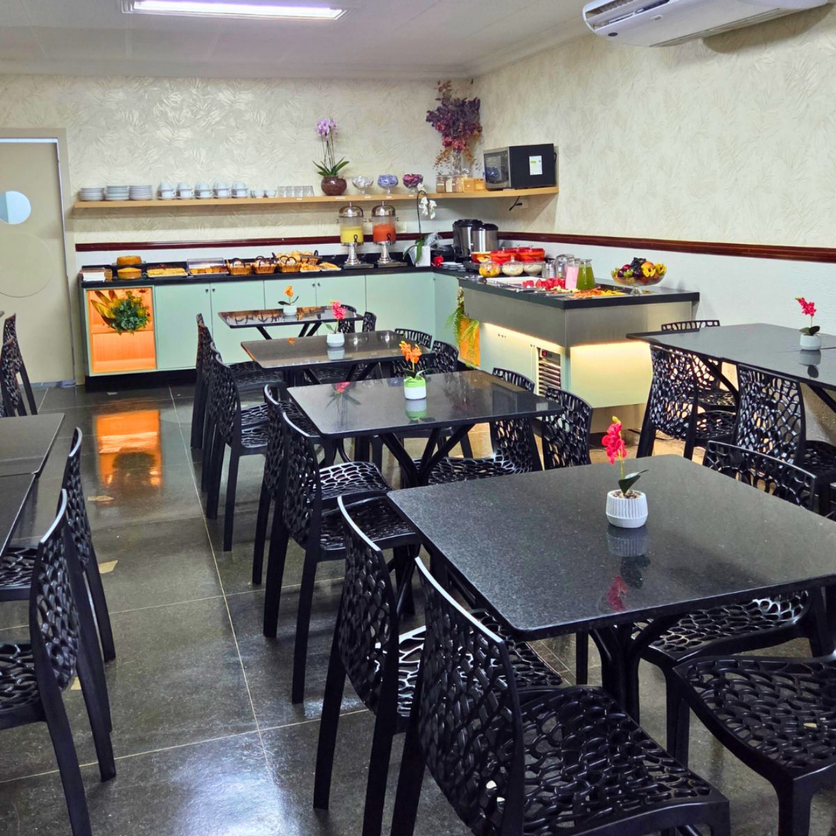 O Bandeirantes Hotel serve diariamente um delicioso buffet de café da manhã, ideal para começar bem o dia. O bar do hotel também está à disposição para momentos de descontração.